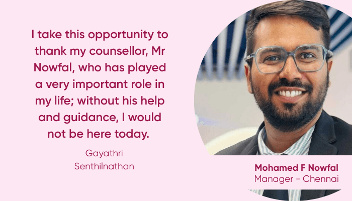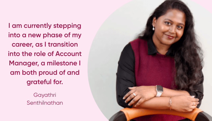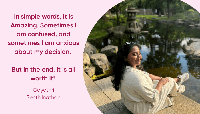 I am Gayathri Senthilnathan, originally from Chennai, and the firstborn daughter in a family of women. Growing up in a household of women shaped my independence, resilience, and sense of responsibility from an early age.