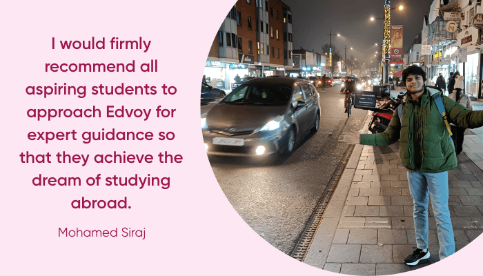 Mohamed Siraj moved to the UK with the help of Edvoy, navigating through the challenges of applying to universities. His story highlights how personalised guidance from Edvoy UK can make a world of difference.