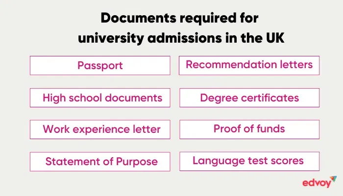 The first step in the application process is to identify your areas of interest and select the right course and university. Once you’ve finalised the university, visit the university’s website and review the eligibility requirements. This includes your academic scores, language test scores, work experience letter, statement of purpose, CV, and other documents. You can apply for undergraduate courses through UCAS.