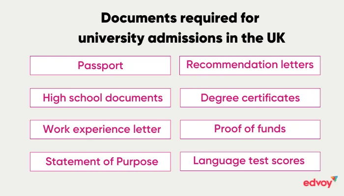 The first step in the application process is to identify your areas of interest and select the right course and university. Once you’ve finalised the university, visit the university’s website and review the eligibility requirements. This includes your academic scores, language test scores, work experience letter, statement of purpose, CV, and other documents. You can apply for undergraduate courses through UCAS.