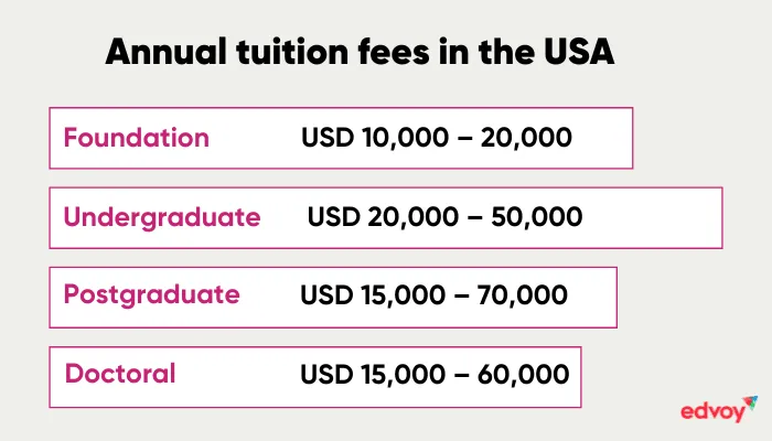 Your academic expenses will vary significantly based on the level of study. For foundation programmes, the cost can range between USD 10,000 and USD 20,000 annually. Undergraduate tuition fees can go up to USD 50,000, and postgraduate programmes can go up to USD 70,000.