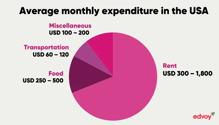 Living expenses in the USA vary widely based on your location. However, on average, the cost of living for international students is between USD 10,000 and USD 25,000 annually. If you choose to live in cities like New York and Boston, you should expect higher expenses compared to smaller towns.